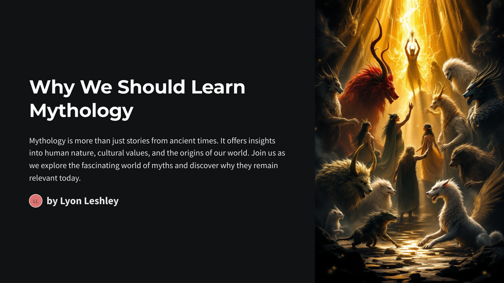 "In this presentation, we will delve into the multifaceted roles that mythology plays in our lives. You might be wondering: Why should we take time to study mythology in our rapidly modernizing world? The answer lies in the profound insights these ancient tales offer us about ourselves and our society.